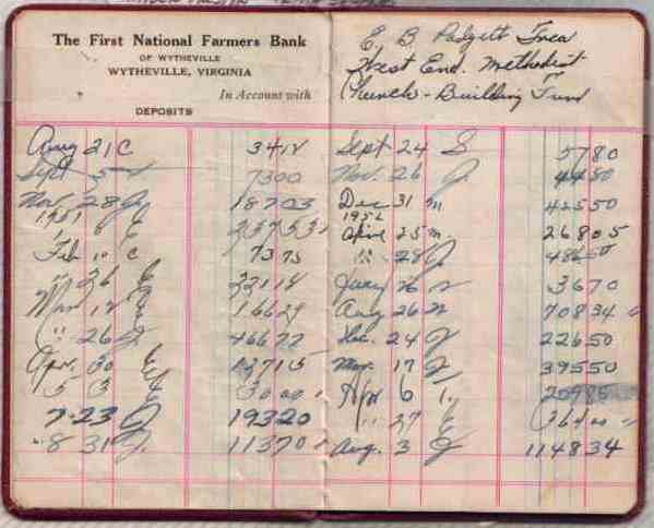 With the building debt now paid, the church turned to another needed project. The furnace was too small to heat the church so a need was felt for a better heating plant. The appointed committee decided on a gas furnace to replace the coal furnace. This was installed by the Wytheville Bottle Gas Company at a cost of $1,394.00. In July of 1954, the Reverend Holdredge answered a call to teach at Ferrum Junior College at Ferrum, Virginia. The Reverend W. O. Webster came as pastor of the Wytheville Circuit. On March 24, 1955, a group of men from churches of the circuit met at the District parsonage, and a plan was presented by District Superintendent Marvin Kincheloe for the division of the circuit, putting Mt. Ephraim and New Bethel on the Rural retreat Circuit, and leaving West End, Cedar Hill, and Evergreen on the Wytheville Circuit. At the Fourth Quarterly Conference on March 27, 1955, this plan was rejected and a substitute plan presented. This plan was to make West End and Bethel Church on the Mt Pleasant Circuit a two point charge, leaving four churches on the Wytheville Circuit. Bethel voted not to leave the Mt Pleasant Circuit. The possibility of making West End a station church was then proposed and voted and passed by the congregation by a large majority. At Annual Conference, June, 1955, West End was made a station church. A lot had previously been purchased adjoining the church property, and ground was broken for a new parsonage on May 30, 1955. Immediately following conference, work was begun on the parsonage. Hugh Grubb was made chairman of the building committee. F. W. Neese was made chairman of the finance committee. At a special dinner in the church basement, the program concerning the building of the parsonage was presented to the congregation. Pledges were secured at this meeting, and in a visitation campaign which followed which was sufficient to meet the requirements for the beginning of construction. Materials were secured and the parsonage construction was soon underway. Much of the labor was donated, thereby reducing the cost of the building. Then parsonage, when completed, was valued at $13,500.00. In order to furnish the parsonage adequately and completely, different classes in Sunday School agreed to furnish the different rooms. The cost of furnishing the kitchen was included in the construction. The Methodist Youth Fellowship furnished the dining room. The Willing Workers Class furnished one bedroom, and the Fellowship Class furnished the living room. The parsonage was completed and the pastor and family moved in October 14, 1955. In early May, 1958 the Reverend Robert Shelly transferred to the Florida Conference.
